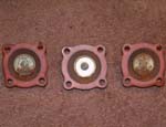 Accelerator pump gaskets as removed. Note the piles of rust and dirt built up in the diaphragm.