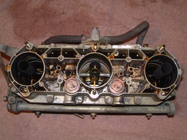 removing the plugs. If you remove the air correction jets then the top half of the carb body will come off