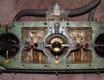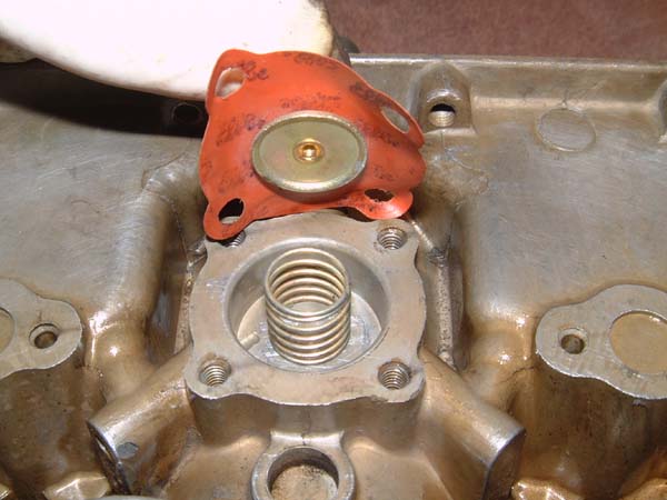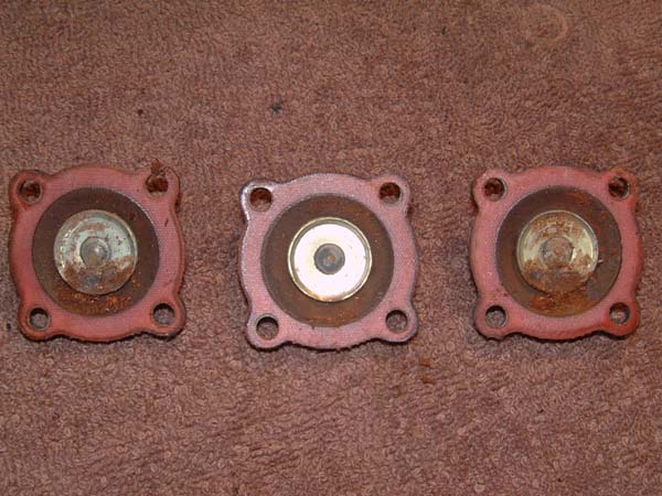 Accelerator pump gaskets as removed. Note the piles of rust and dirt built up in the diaphragm.